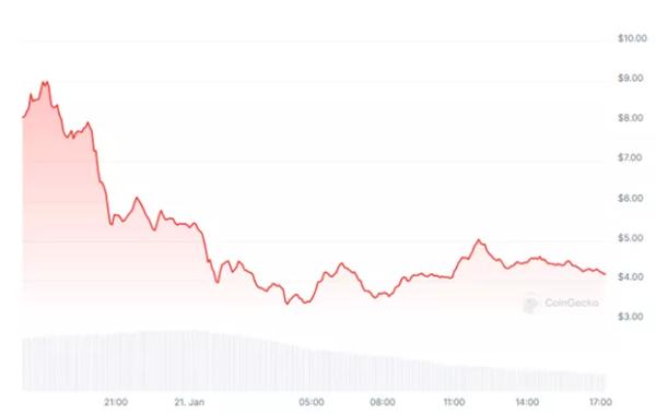 21 січня падіння цін токенів Official Trump (TRUMP) і Melania Meme (MELANIA) від піка досягло 29,8% і 53,8% відповідно. До різкої фіксації прибутку призвела відсутність згадки криптовалют під час виступу Дональда Трампа на інавгурації.