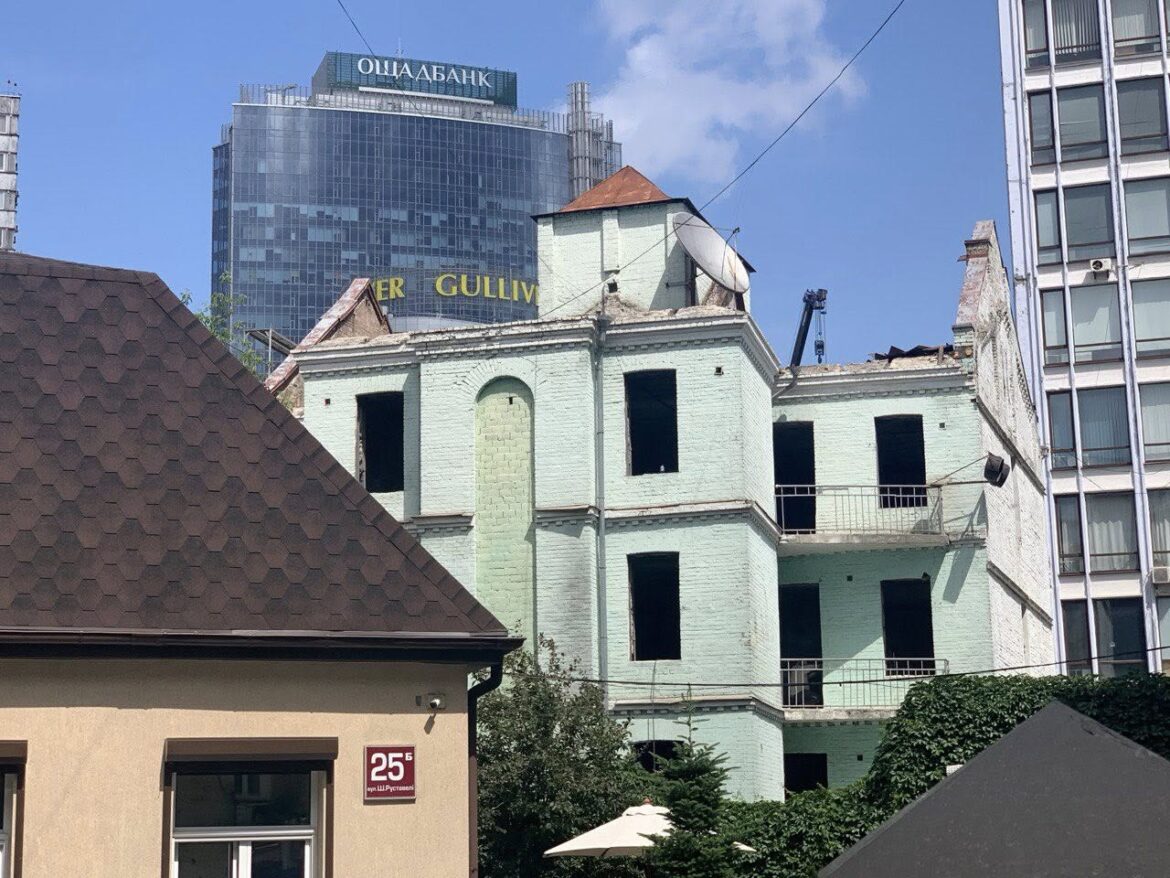 У цьому контексті Дмитро Перов зауважив, що цю історичну будівлю було зведено 1900 року. Будинок належав відомому київському дитячому лікарю Павлу Баршаху. На початку червня будівельники повністю розібрали дах будівлі, а нині демонтують внутрішні перекриття, на об’єкті працює кран, вантажівка вивозить на смітник унікальну київську жовту цеглу та уламки перекриттів.